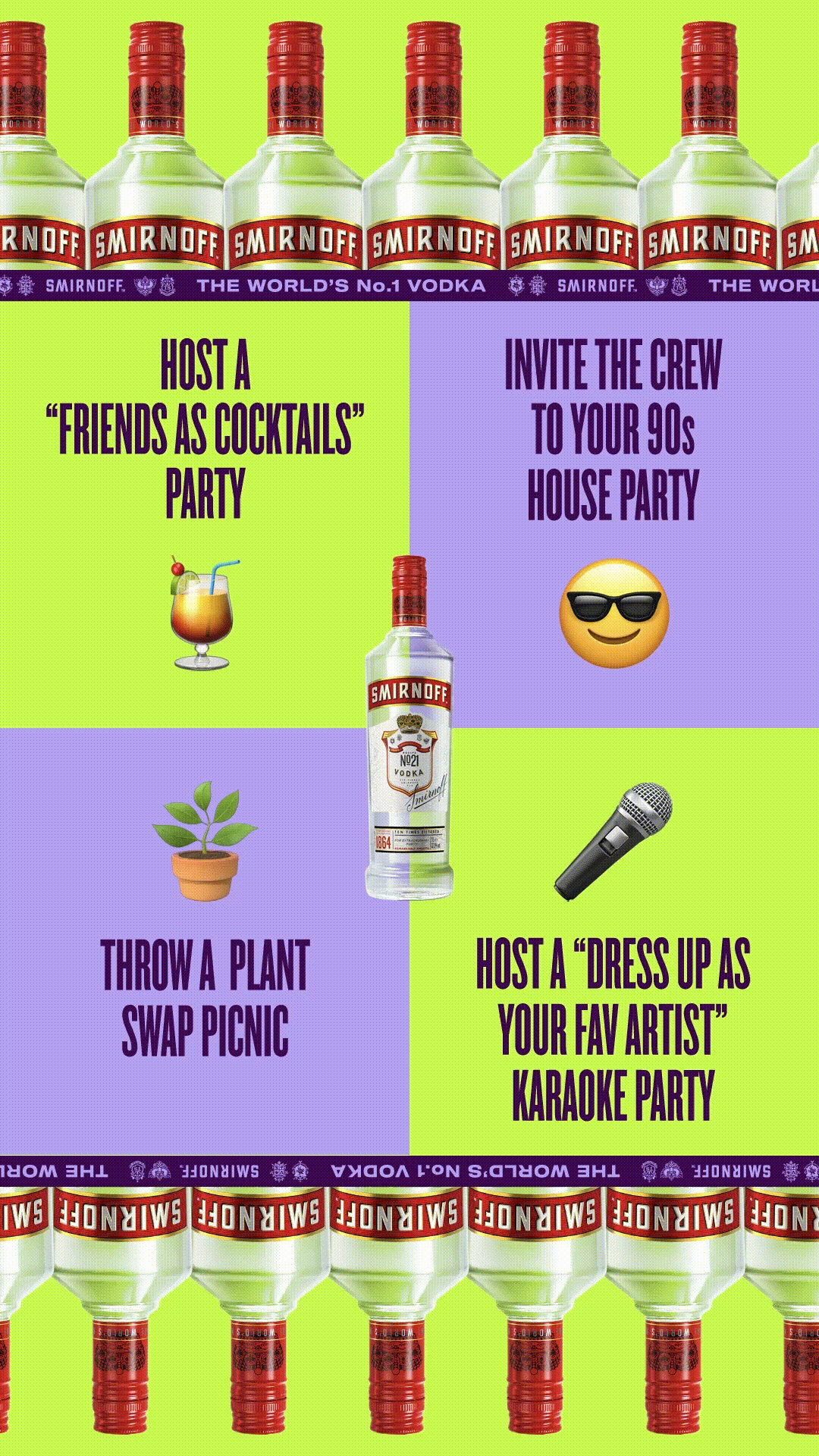 I helped on the new business pitch, winning and having VML become Smirnoff's social and digital AOR. During my time on the account, I produced organic social content, paid digital ads, and, occasionally, creative campaigns and activations for both the US and Global markets.